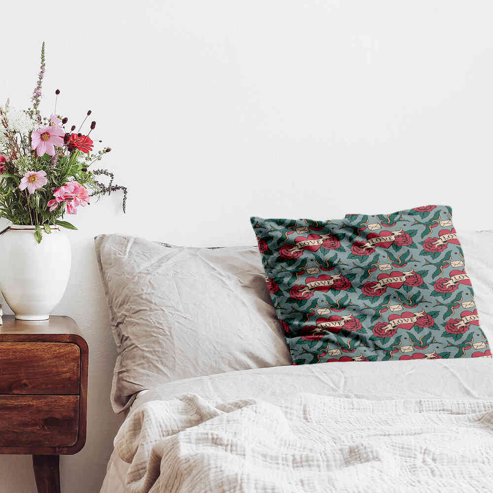 • Polyester: Polyester gefülltes Kissen + Bezug