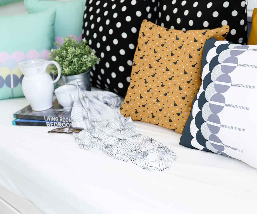 • Polyester: Polyester gefülltes Kissen + Bezug