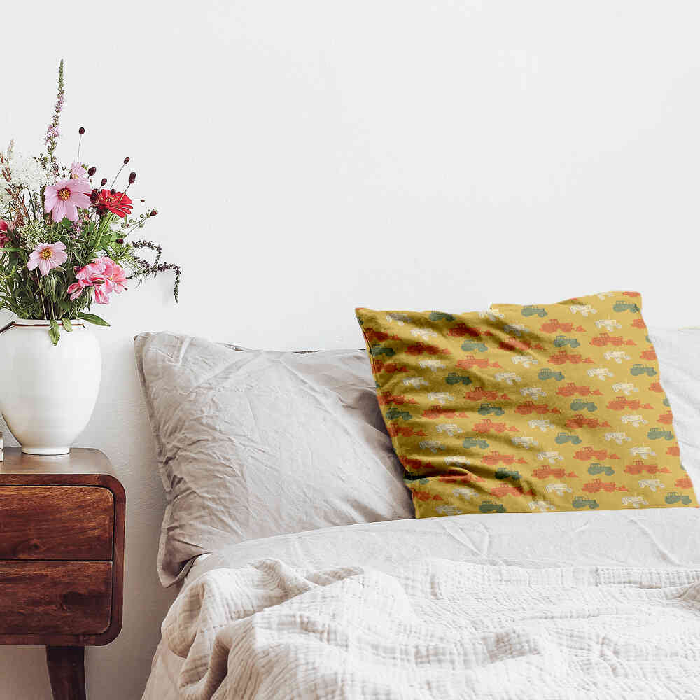 Almohada de salud naranja con tractores