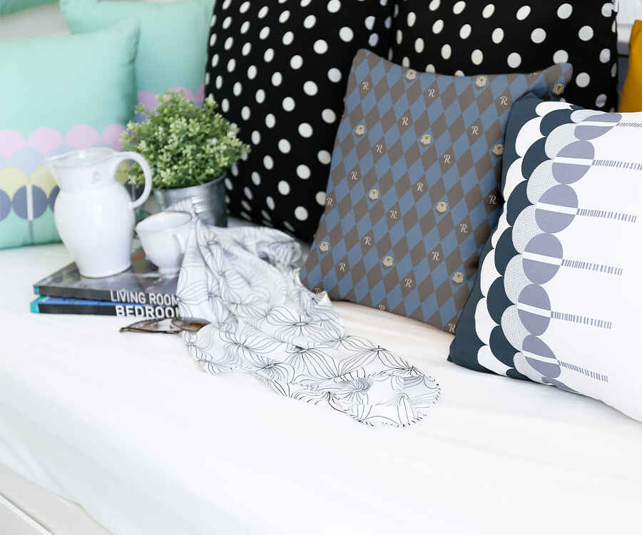 • Polyester: Polyester gefülltes Kissen + Bezug