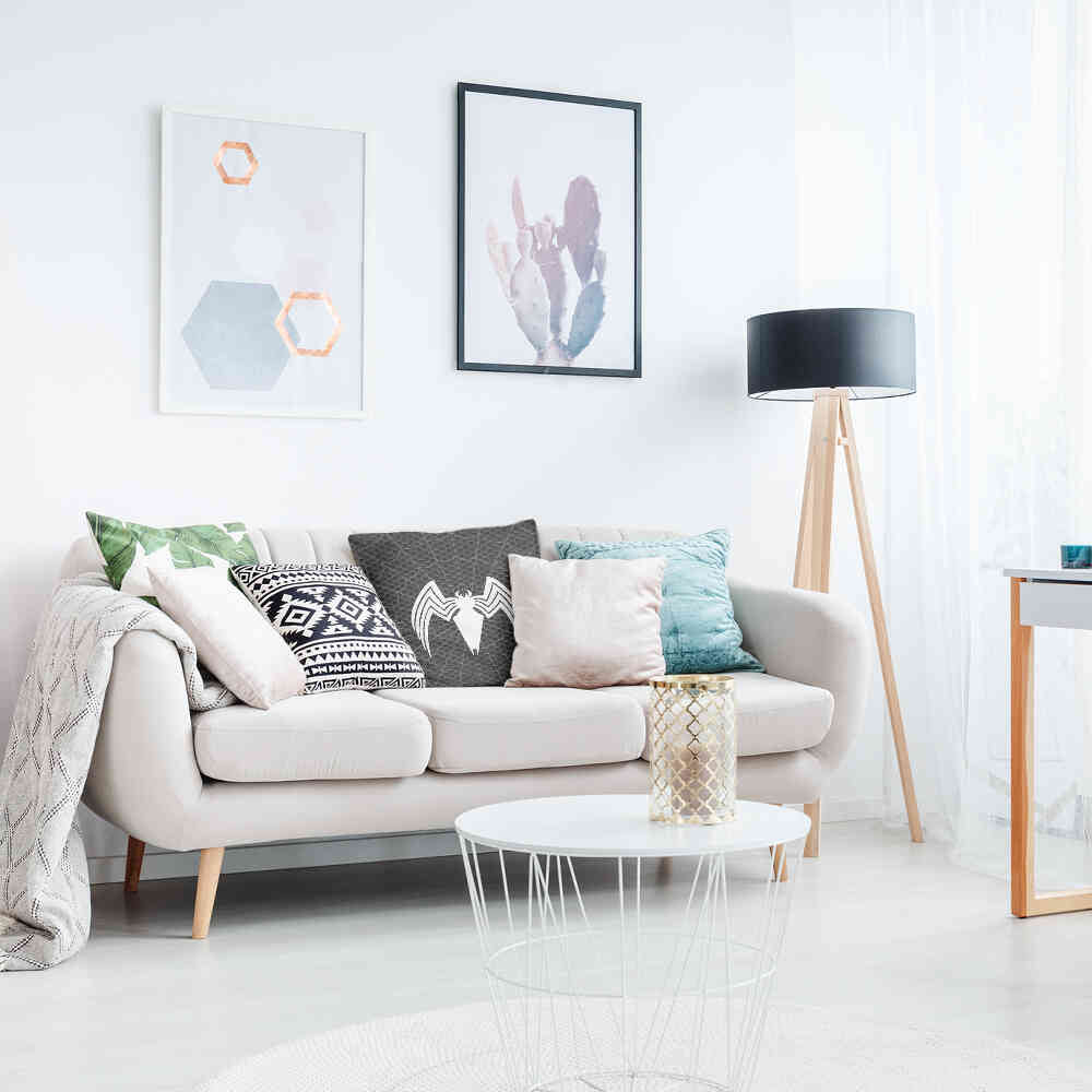 • Polyester: Polyester gefülltes Kissen + Bezug