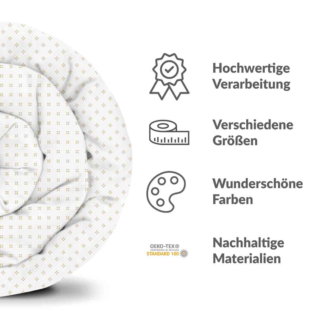 La manta terapéutica estándar está lastrada con cuentas de vidrio de alta calidad, finas como arena, que se encuentran en pequeñas cámaras. La manta terapéutica premium tiene en su interior pequeñas cuentas de acero inoxidable, que están firmemente pegadas y por lo tanto no se desplazan. Las fundas interiores de ambos modelos están hechas de 100% algodón.