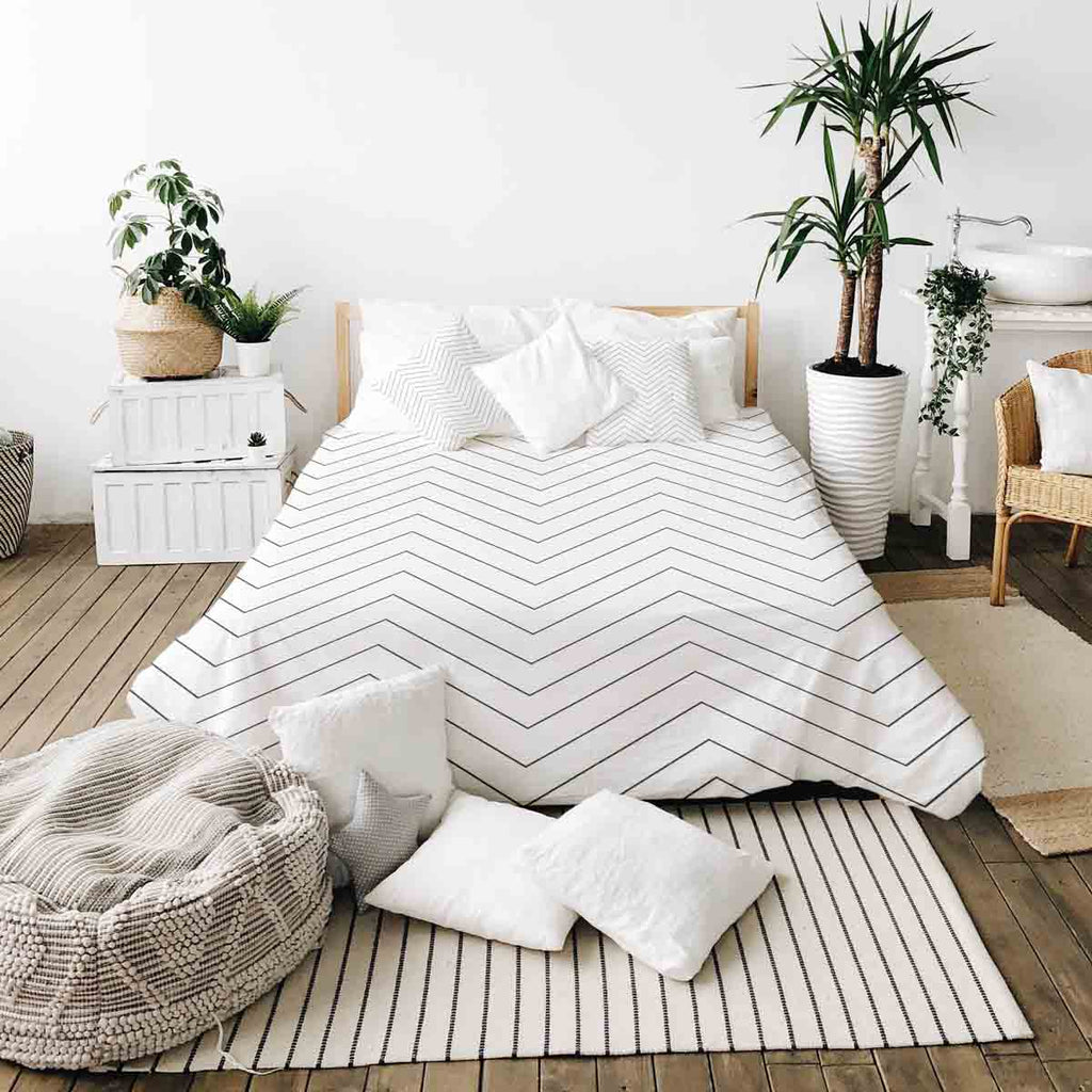 Manta terapéutica original - Funda de algodón blanca con zigzag negro