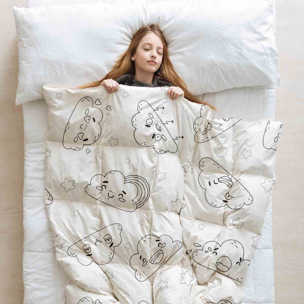 Manta terapéutica original - Funda de algodón blanca con divertidas nubes