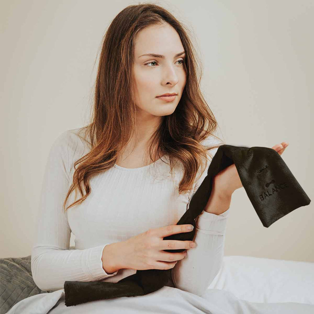 La máscara de peso es una parte esencial de la rutina de belleza de toda mujer. Ayuda a mantener los ojos húmedos y suaves, lo que hace que se vean frescos y radiantes. Debido al peso de la máscara (aprox. 300g), se relajan la frente y la zona de los ojos, y se minimiza la formación de arrugas. Un sueño equilibrado reduce las ojeras, el estrés y el cansancio, para que se sienta renovada y llena de energía.