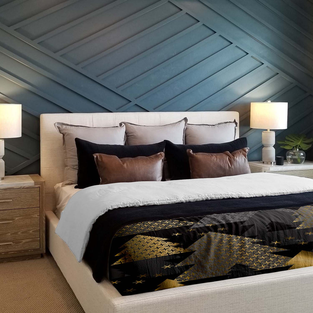 Set de ropa de cama con mantas terapéuticas y árboles de abeto dorados