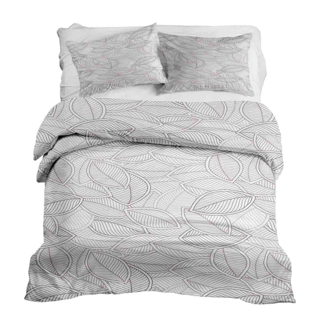 Set de ropa de cama con mantas terapéuticas y hojas de palma grises