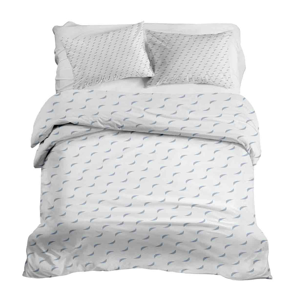 Juego de ropa de cama con manta terapéutica blanca con ondas azules