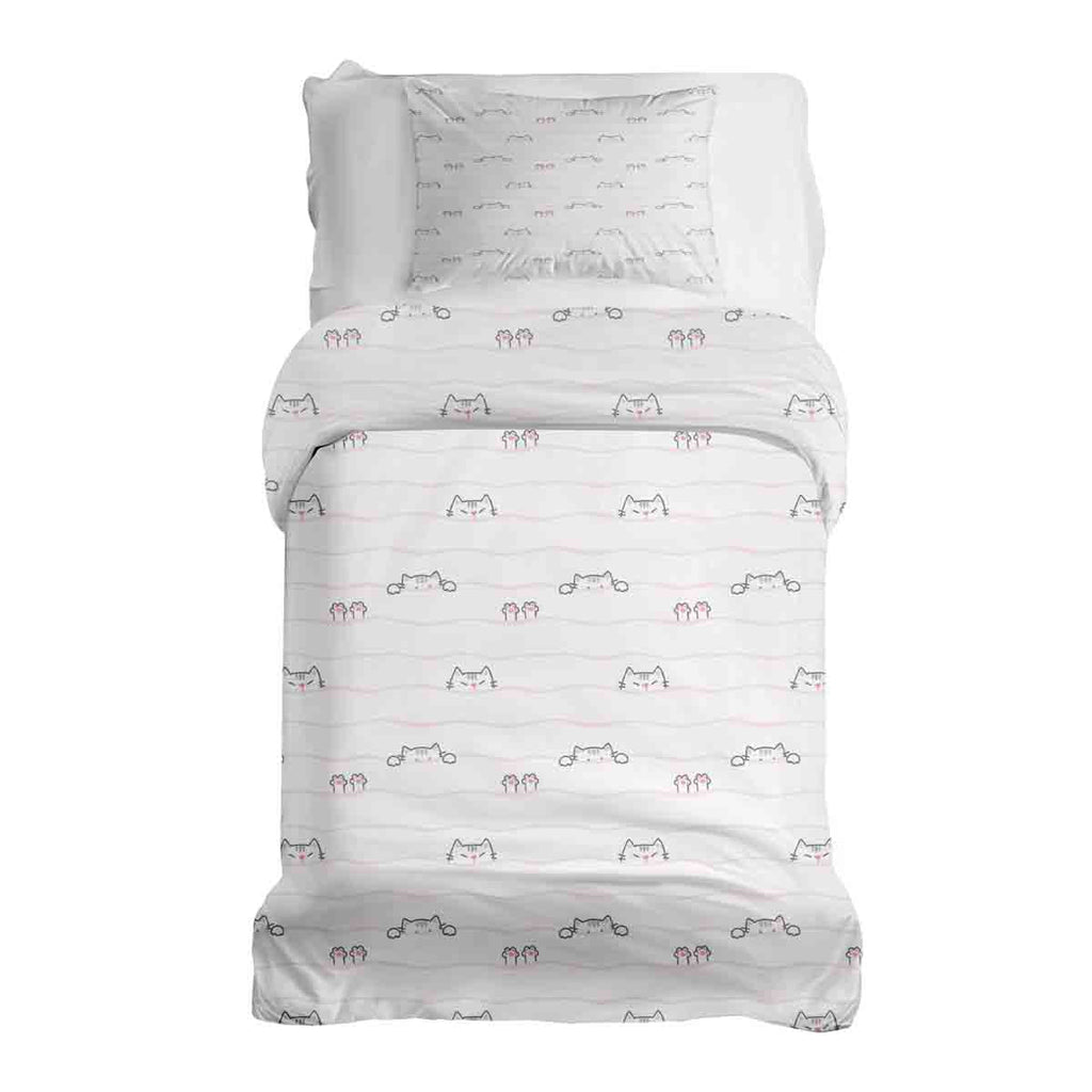 Set de ropa de cama con manta terapéutica blanca con pequeños gatos