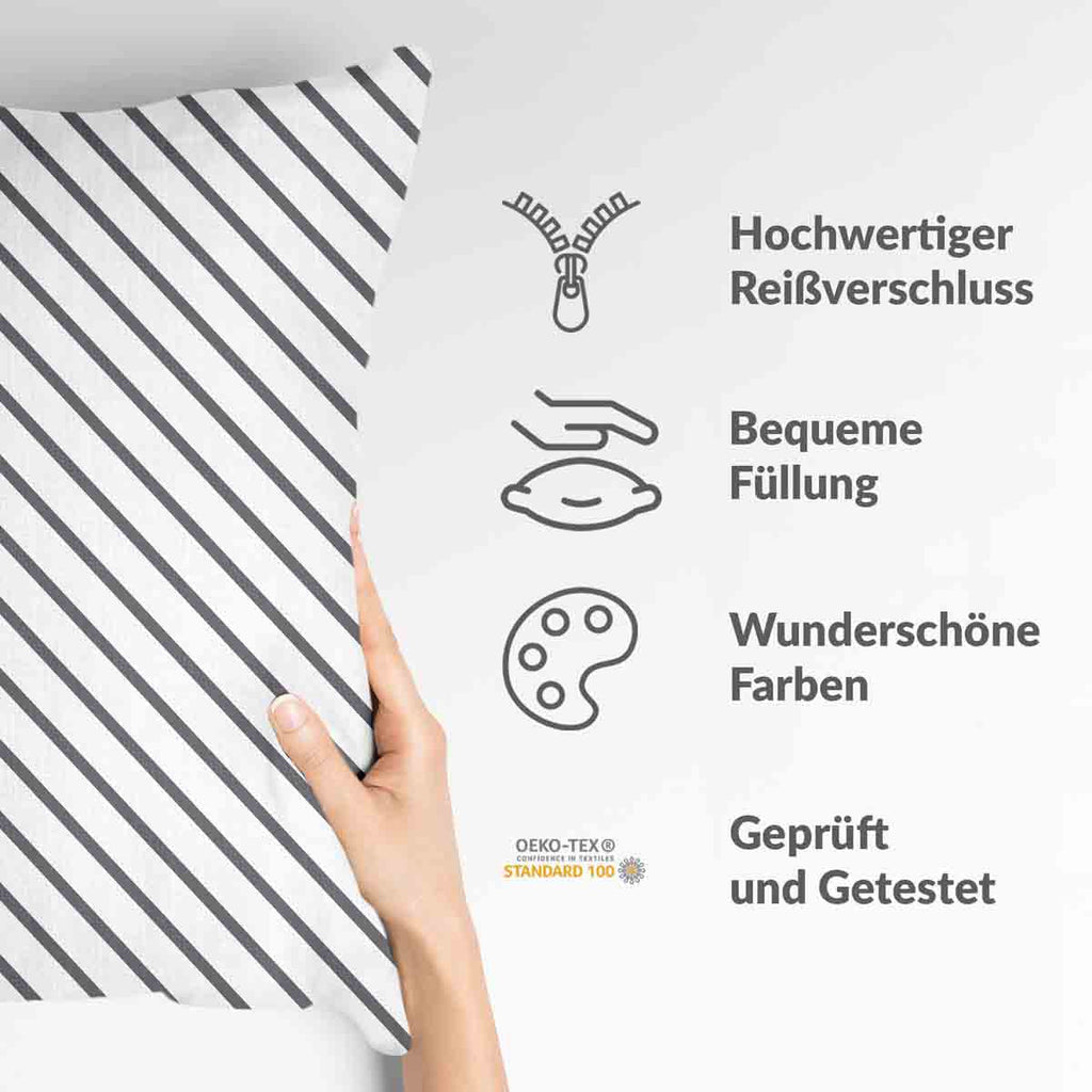 • Polyester: Polyester gefülltes Kissen + Bezug
