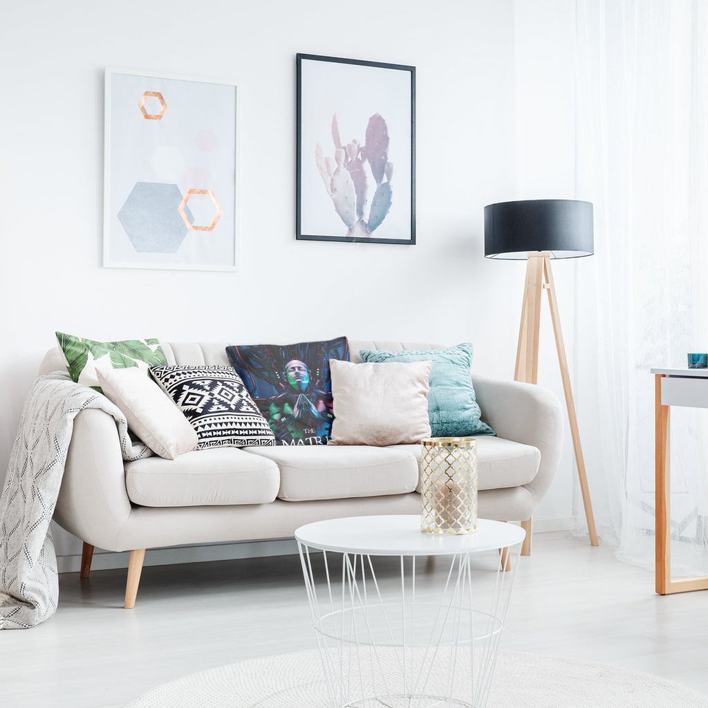 • Polyester: Polyester gefülltes Kissen + Bezug