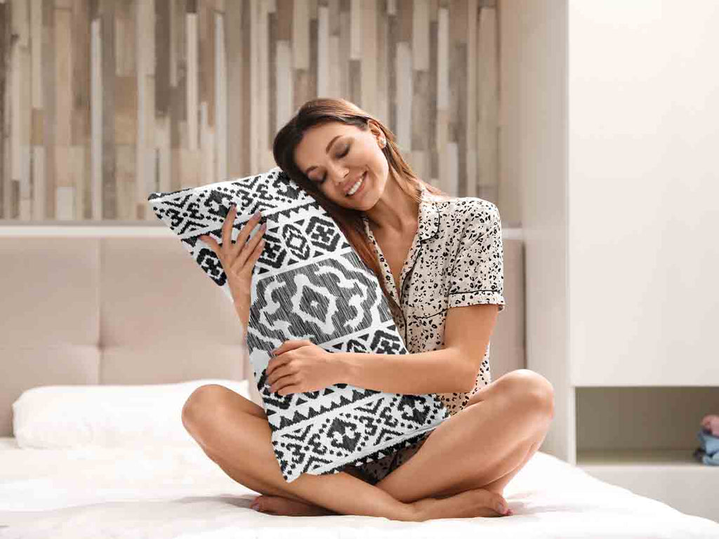 • Polyester: Polyester gefülltes Kissen + Bezug