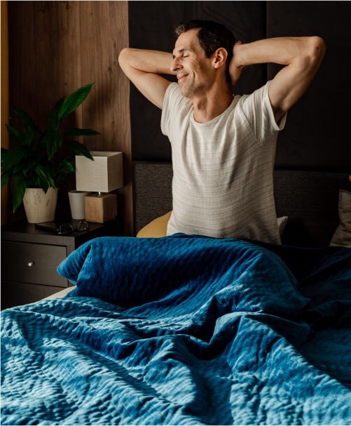 Las mantas con peso a menudo se recomiendan a personas que sufren de insomnio. El estudio “Positive Effects of a Weighted Blanket on Insomnia” (ver Estudio 1) de Ackerley, R, Badre, G. y Olausson, H. de 2015 mostró los efectos de una manta con peso sobre el insomnio mediante mediciones objetivas y subjetivas. Objetivamente, los investigadores observaron que el tiempo para quedarse dormido y los movimientos de los participantes disminuyeron durante el uso de la manta con peso. Subjetivamente, los participantes disfrutaron dormir con la manta, les resultó más fácil conciliar el sueño y tuvieron un mejor descanso, sintiéndose más renovados por la mañana. En general, se observó que los participantes que usaron la manta con peso dormían más tranquilos por la noche. El resultado del estudio indica que una manta con peso puede ayudar a reducir el insomnio mediante estímulos táctiles modificados, representando así un enfoque innovador, no farmacológico y una herramienta complementaria para mejorar la calidad del sueño. Este enfoque está respaldado por otro estudio reciente “Weighted Blanket Improves Sleep And Increases Relaxation” (ver Estudio 2). Según los participantes, el uso de una manta con peso reduce la sensación de estrés, aumenta la sensación de relajación y puede mejorar el sueño y disminuir el tiempo despierto durante la noche.