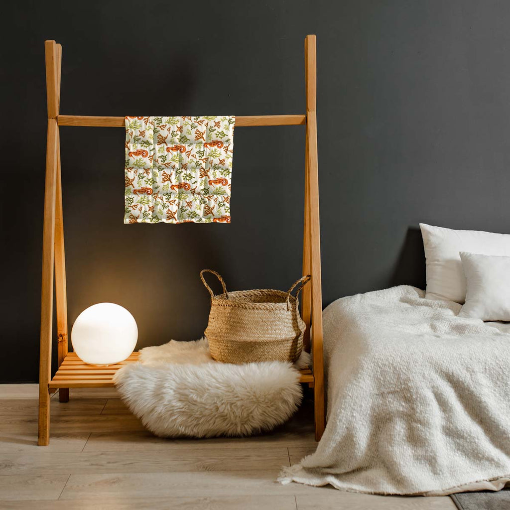 - Aus 100% Baumwolle gefertigt und mit Glasperlen gefüllt, die in Quadrate abgenäht sind