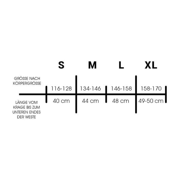 - Gewicht der Weste kann selbstständig durch herausnehmbare Kissen verändert werden