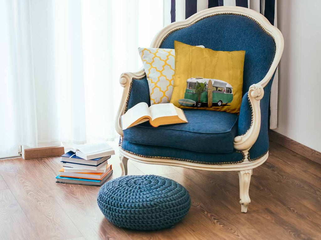 Almohada de salud amarilla con autobús