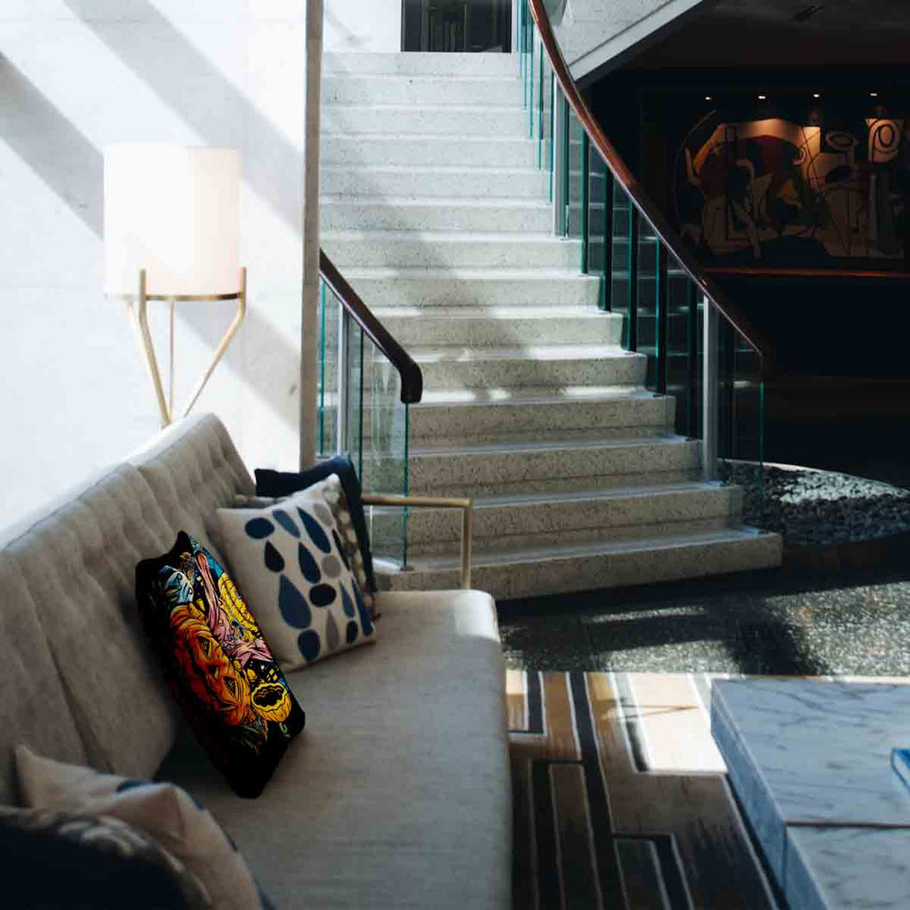 • Polyester: Polyester gefülltes Kissen + Bezug