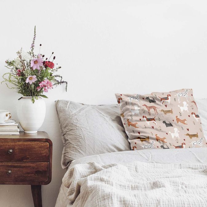 • Polyester: Polyester gefülltes Kissen + Bezug