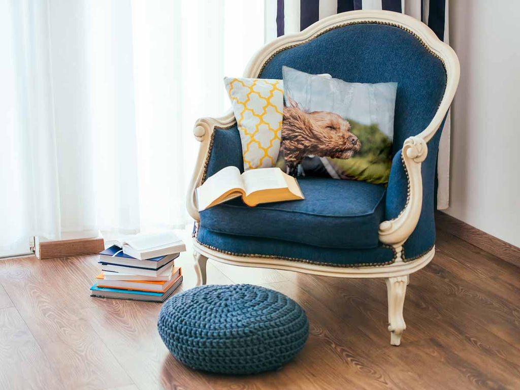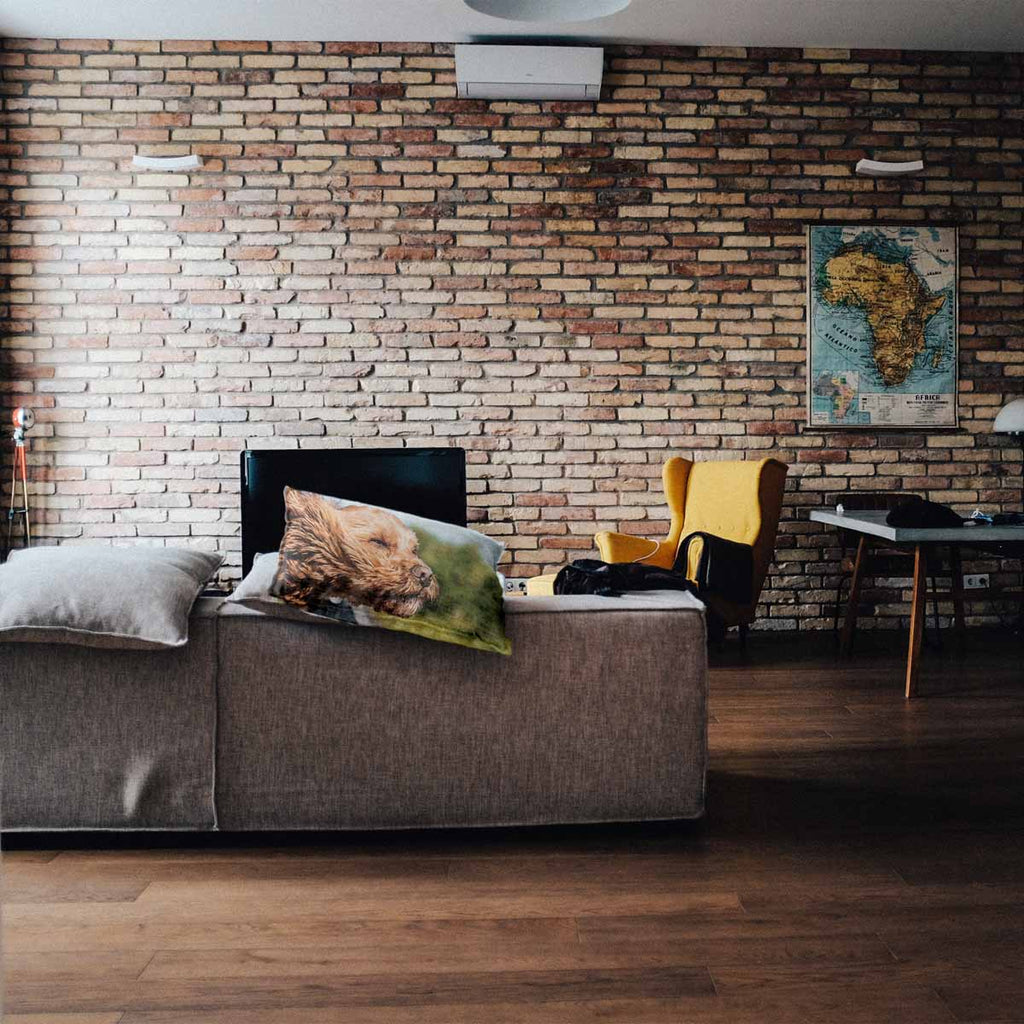 • Polyester: Polyester gefülltes Kissen + Bezug