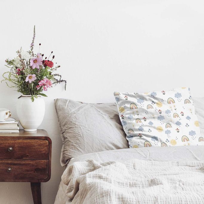 • Polyester: Polyester gefülltes Kissen + Bezug