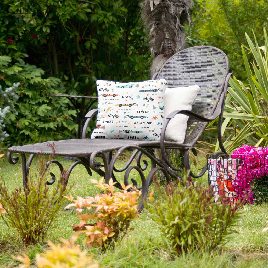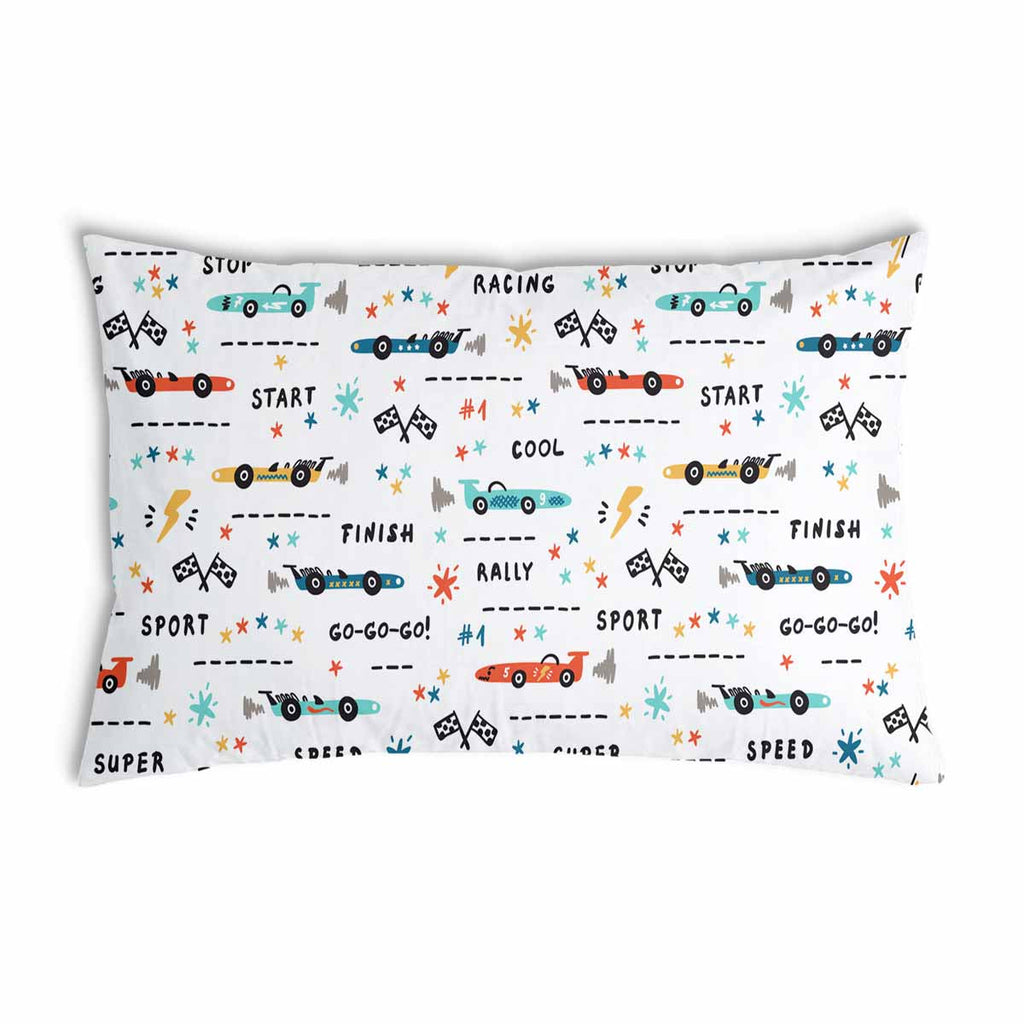 Almohada de salud blanca con coches de carreras