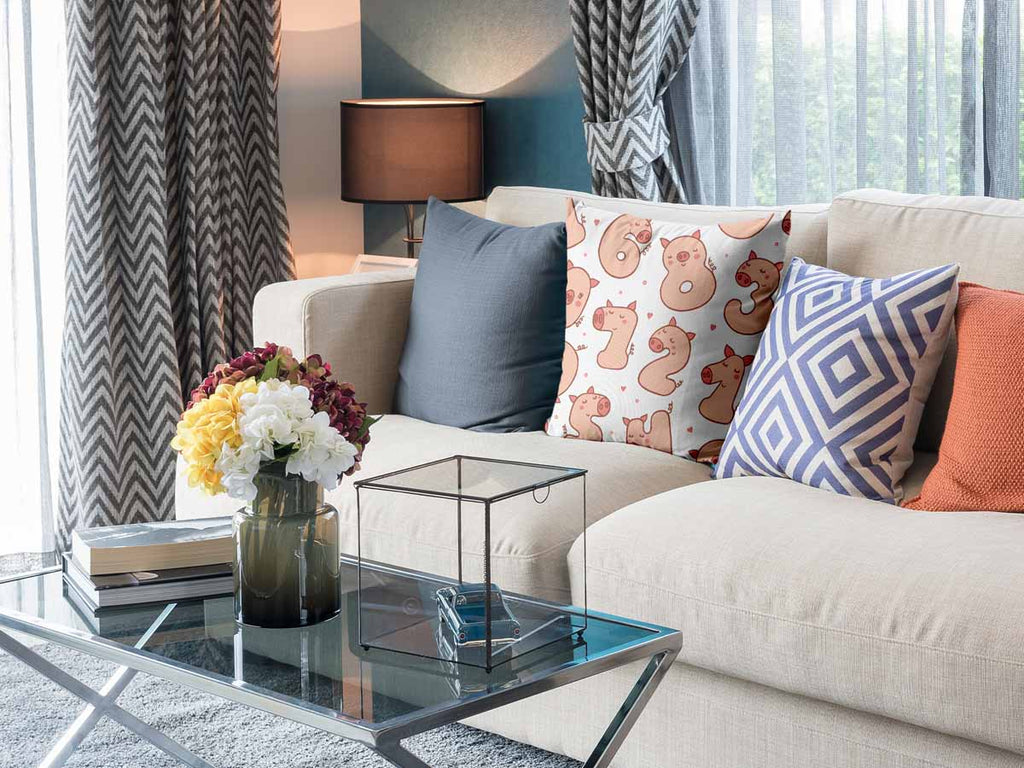 Almohada de salud blanca con números y cerdos