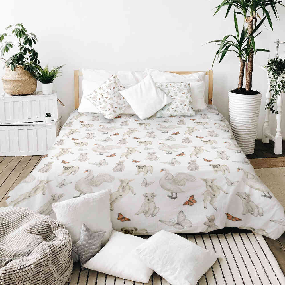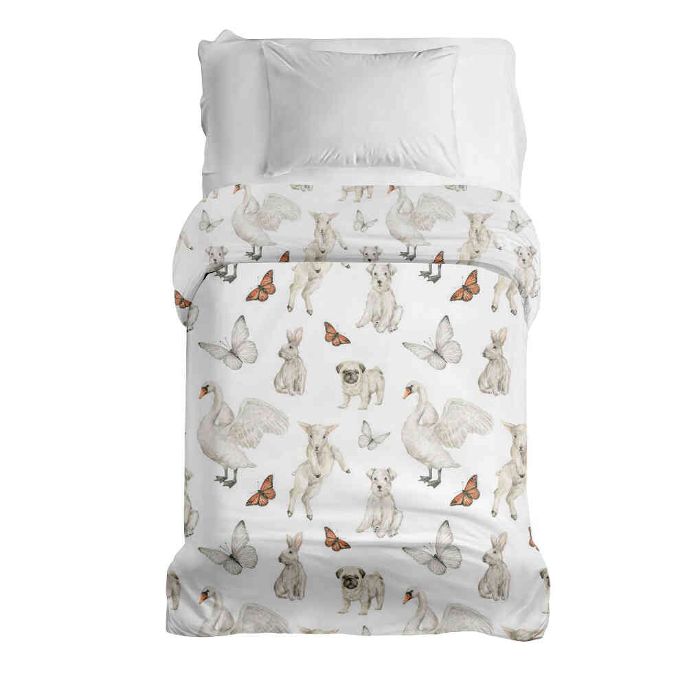 Manta terapéutica original - Funda de algodón blanca con animales adorables