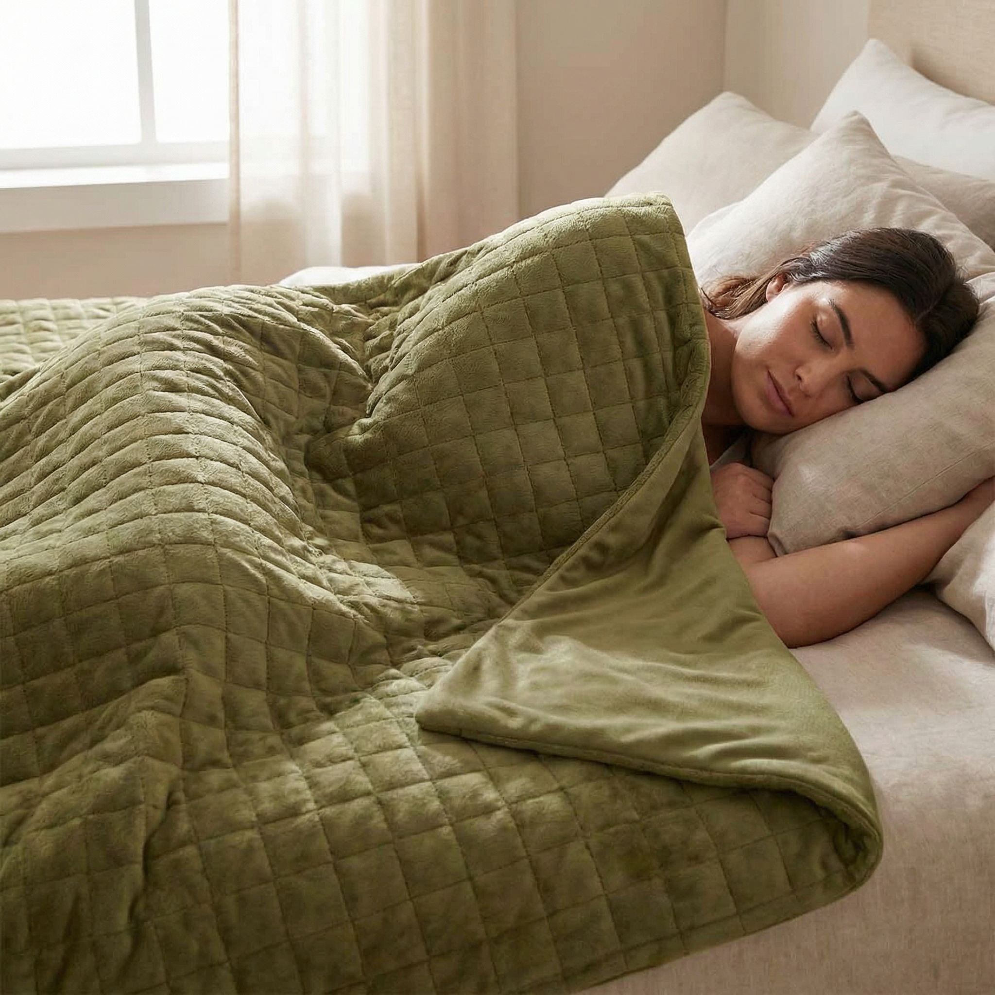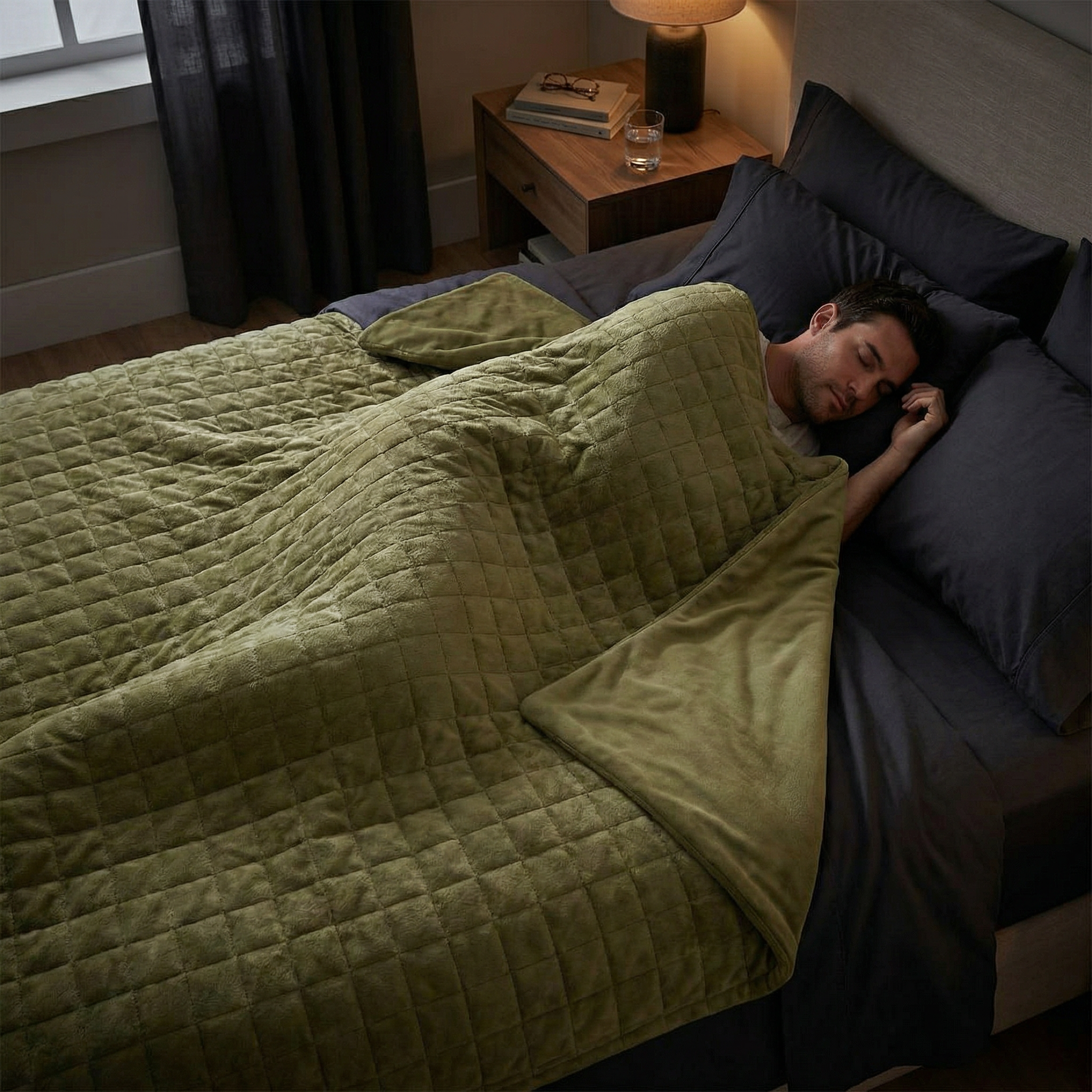 Manta terapéutica original - Manta con peso con funda para 4 estaciones en verde oliva para adultos
