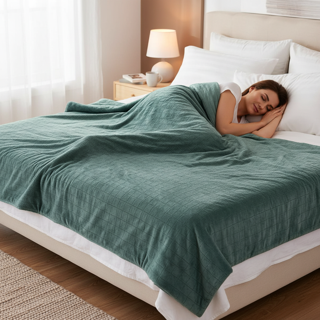 Manta terapéutica original - Manta con peso con funda para las 4 estaciones en verde menta para adultos