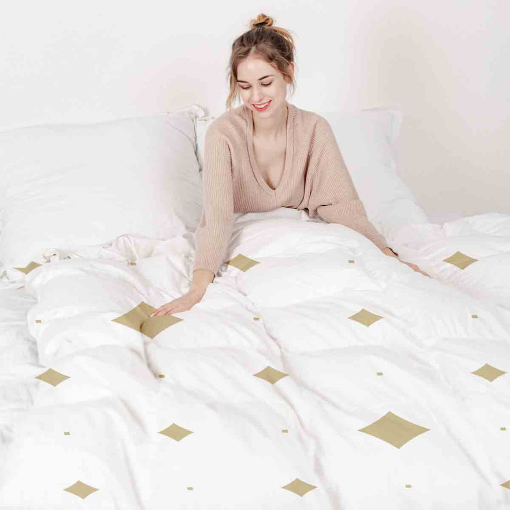 Set de ropa de cama con mantas terapéuticas cuadrados dorados