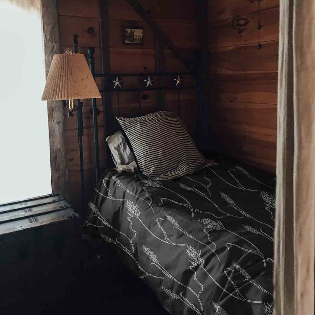 Juego de ropa de cama con manta terapéutica gris oscuro con ramas blancas