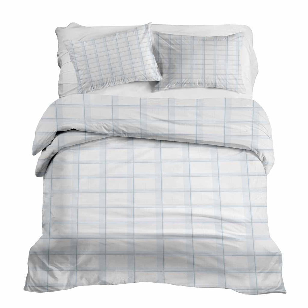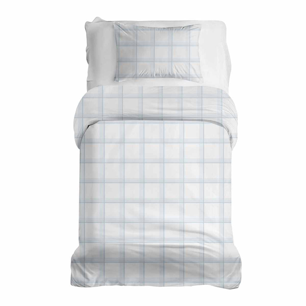 Set de ropa de cama con manta terapéutica blanco azul a cuadros