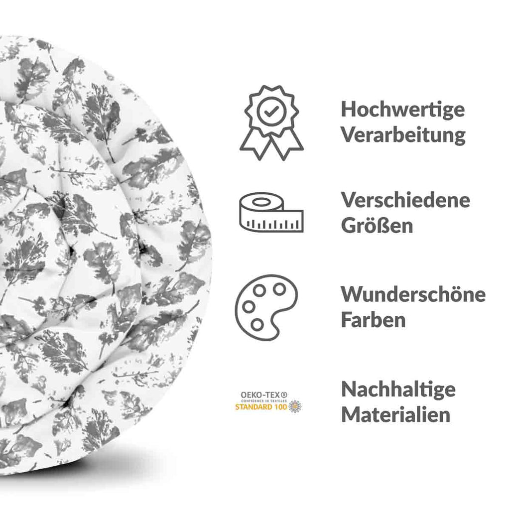 Set de ropa de cama con manta terapéutica blanca con hojas grises
